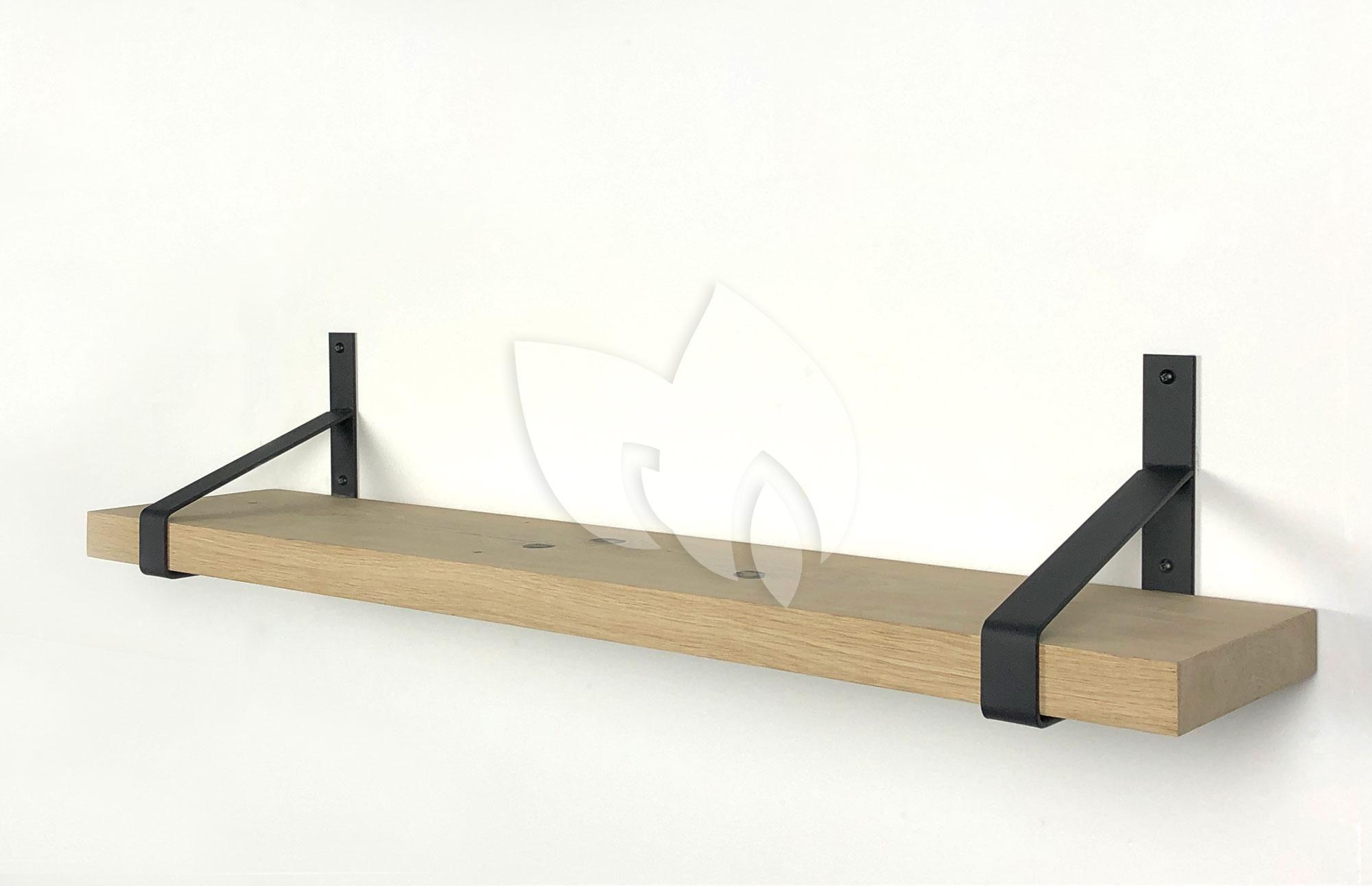 Eiken wandplank massief recht 100 x 30 cm inclusief plankdragers