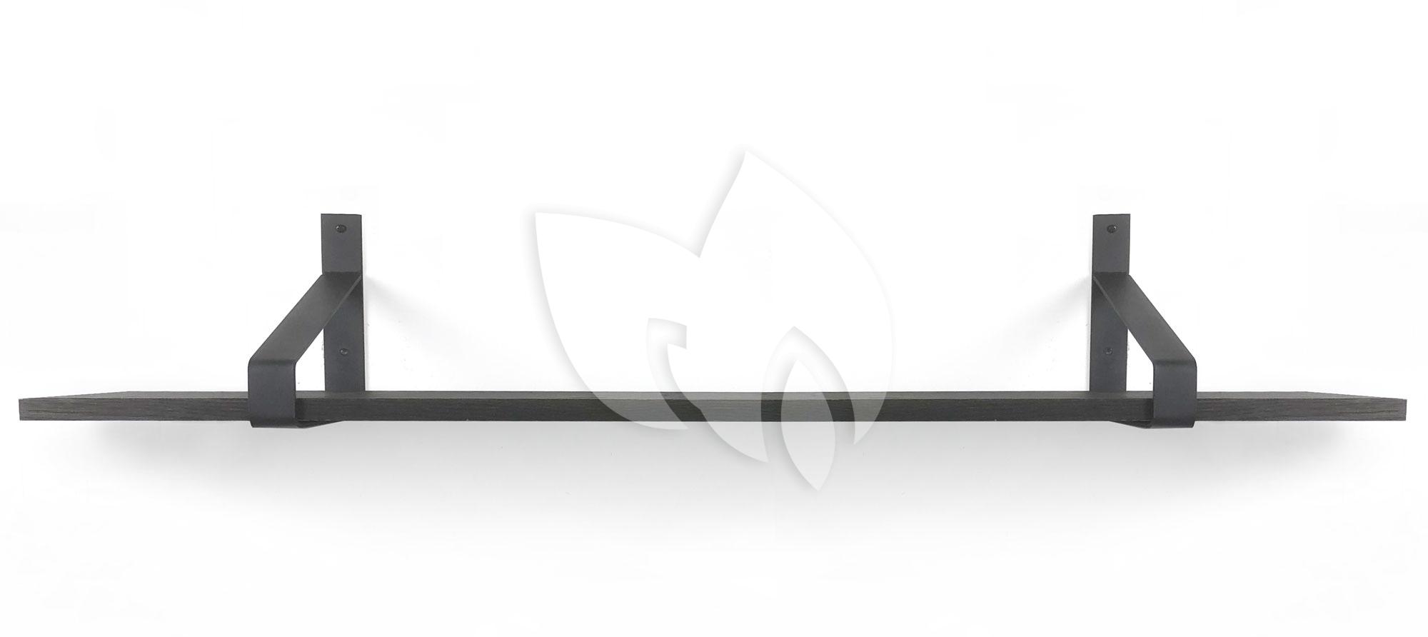 Eiken 18mm wandplank recht zwart 75 cm in 20 cm diepe plankdragers