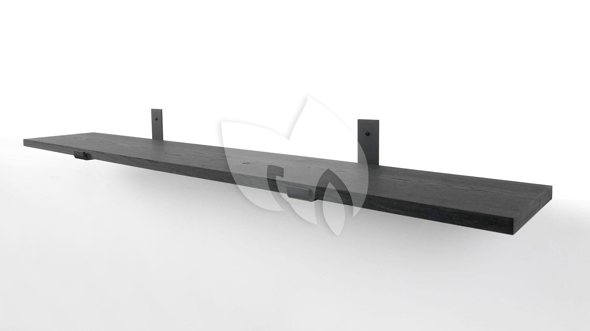 Eiken wandplank zwart 50 x 20 cm met industriele plankdragers