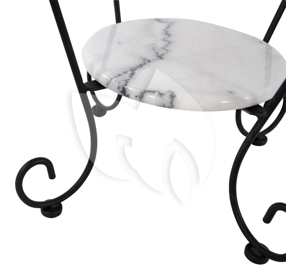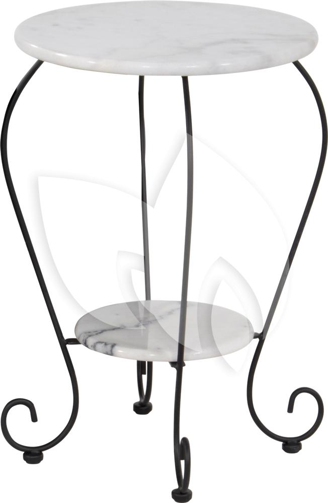 Deze klassieke bijzettafel biedt plaats aan maar liefst 2 tafelbladen! Het onderste blad heeft een doorsnee van 25cm, het bovenste blad is wat groter met een doorsnee van 41cm. De klassieke look van dit bijzettafeltje wordt versterkt door de de poten met ronde vormen en sierlijke krullen. Het onderstel is gemaakt van gietijzer dat samen met de marmeren tafelbladen een stevig geheel maakt van deze dubbele bijzettafel. Zowel huis als tuin wordt onmiddellijk verfraaid met deze bijzettafel!