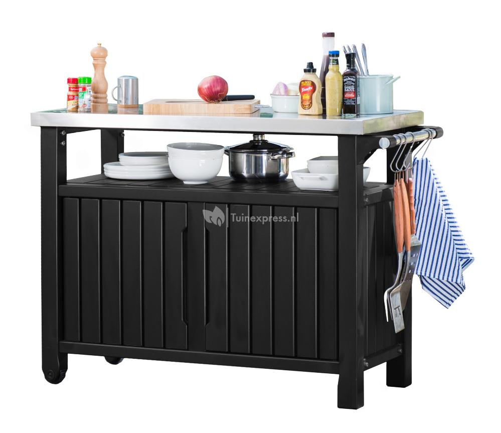 Naast bijzettafel is de Entertainment Table Large van Keter ook nog een opbergbox! Het is dus een multifunctioneel product. De bijzettafel is gemaakt van hoogwaardig kunststof, hierdoor is het (bijna) onderhoudsvrij en weerbestendig. Af en toe schoonmaken is al voldoende. Door de wielen kunt u de bijzettafel makkelijk verplaatsen in uw tuin.