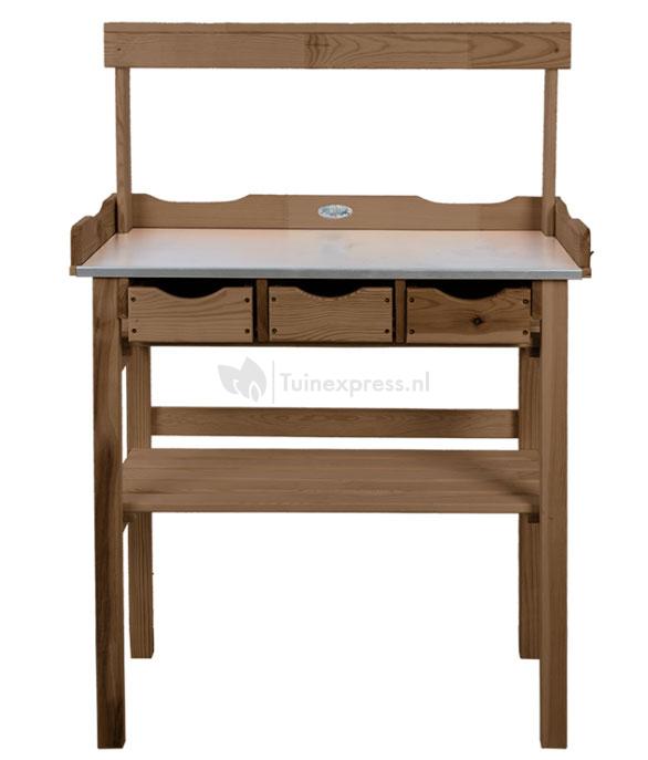 Deze oppottafel is zeer praktisch hij heeft namelijk drie lades waarin je al je oppotbenodigheden en klein tuingereedschap binnen handbereik houdt. Met twee planken welke gebruikt kunnen worden worden voor bijvoorbeeld opberging, plaats hier lege potten of leg er enkele decoratieve items op om de oppottafel aan te kleden. De oppottafel is gemaakt van FSC gecertificeerd hout en is voorzien van een zinken werkblad wat eenvoudig schoon te houden is.