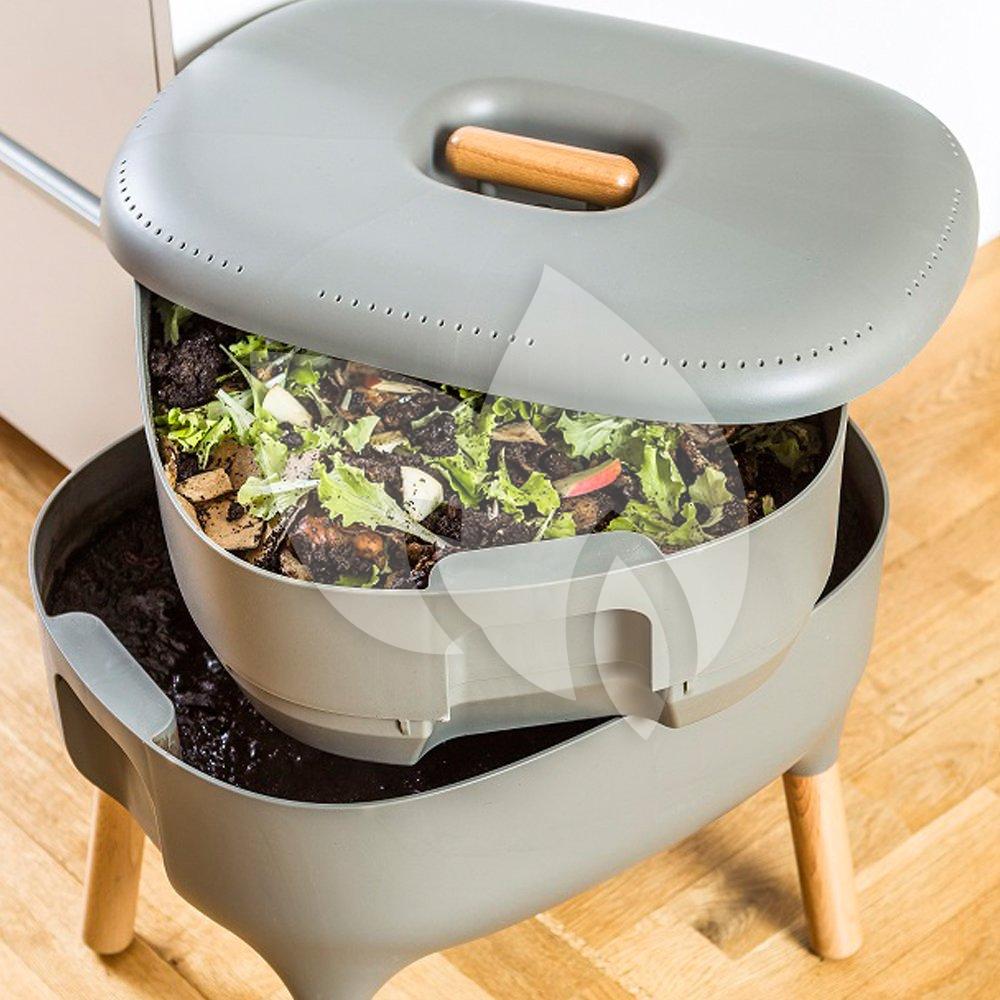 Met deze stapelbare wormenbak verwerk je het keukenafval in een mum van tijd in compost, dit op een eenvoudige, milieubewuste manier. Wormen zullen door je biologisch afval heen eten en vervolgens ontstaat er wormenthee en compost zonder dat je hier iets van ruikt. Tap de wormenthee af en schep het compost op je bloemen en planten. De wormenbak bestaat uit een onderbak op poten, een groentebak, een uitbreidingsbak, textielrooster en schepje. Exclusief wormen