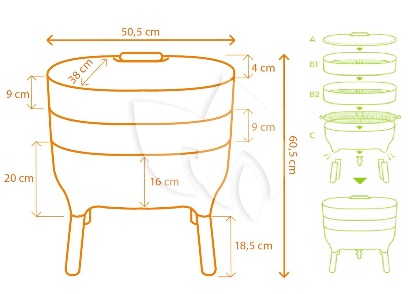 Met deze stapelbare wormenbak verwerk je het keukenafval in een mum van tijd in compost, dit op een eenvoudige, milieubewuste manier. Wormen zullen door je biologisch afval heen eten en vervolgens ontstaat er wormenthee en compost zonder dat je hier iets van ruikt. Tap de wormenthee af en schep het compost op je bloemen en planten. De wormenbak bestaat uit een onderbak op poten, een groentebak, een uitbreidingsbak, textielrooster en schepje. Exclusief wormen