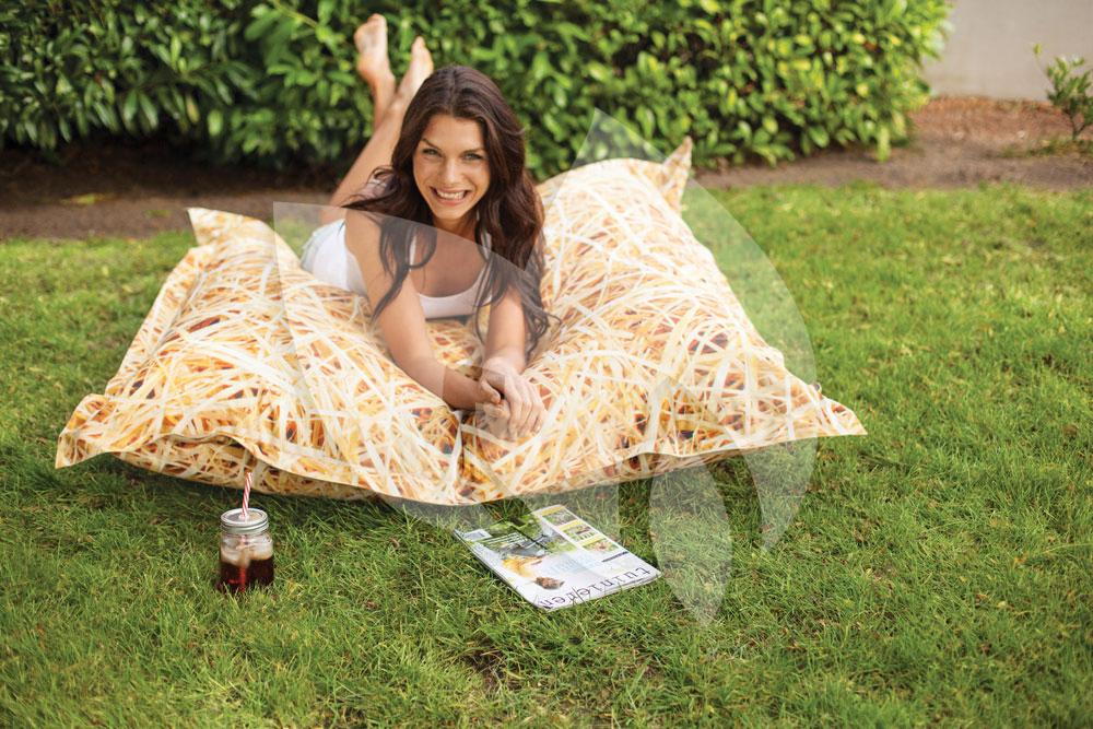 Heerlijk in de tuin genieten in uw eigen zitzak? Met deze zitzak voor buiten is dit voortaan mogelijk. De zitzak is speciaal gemaakt voor buitengebruik en is dus weerbestendig. De zitzak heeft een stro print met een neutrale kleur en past bij ieder exterieur.