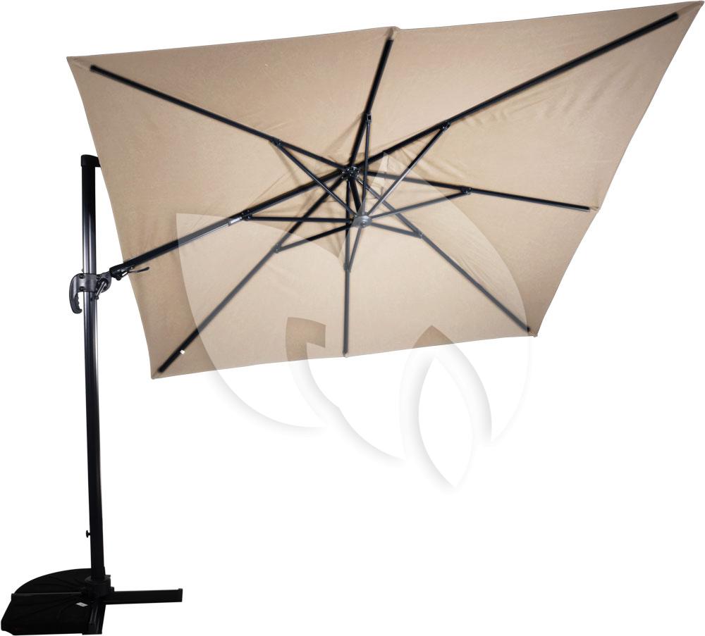 Let op: De zweefparasol wordt geleverd exclusief kruisvoet, een passende parasolvoet is essentieel om de parasol goed en stevig te laten staan.