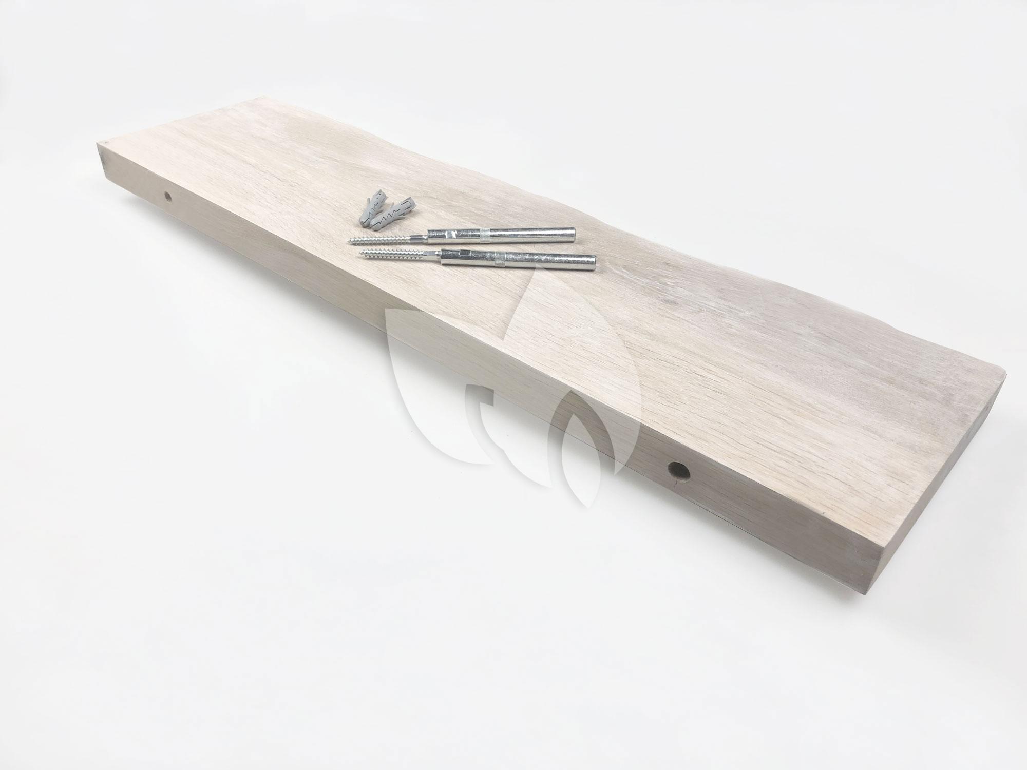 Zwevende wandplank eiken boomstam natuurlijk wit 120 x 20 cm